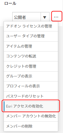 [組織] → [メンバー] → メンバーの名前の一番右側の […] をクリック → [Esri アクセスの有効化] を選択します。
