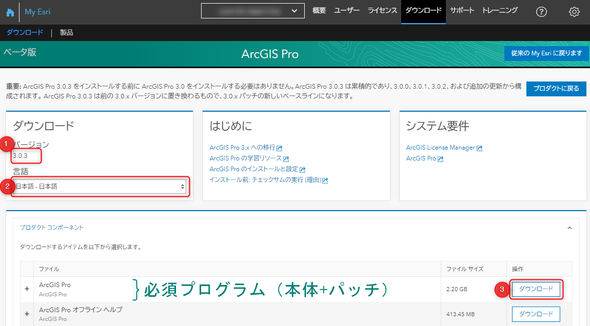 製品のダウンロード - My Esri 利用ガイド