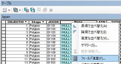 - 値を代入したいフィールドのフィールド名の部分を右クリックし、 [フィールド演算] をクリックします。