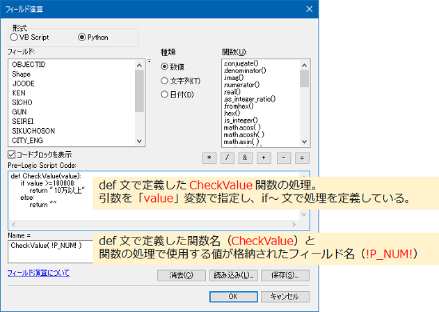 - 条件式の入力形式について、[VB Script] か [Python] のいずれかを選択します。