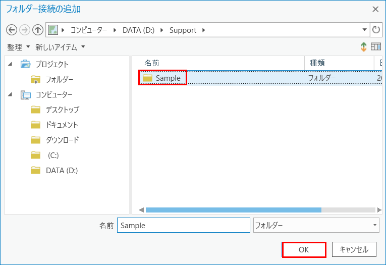 - [フォルダー接続の追加] ダイアログで、マップ ドキュメント(*.mxd ファイル)の保存先のフォルダーを選択し、[OK] をクリックします。
