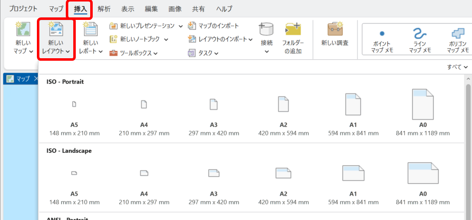 - [挿入] タブ → [新しいレイアウト] をクリックします。