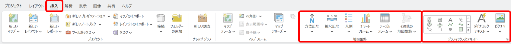 - マップ エレメントは [挿入] タブ → [地図整飾] グループより追加します。