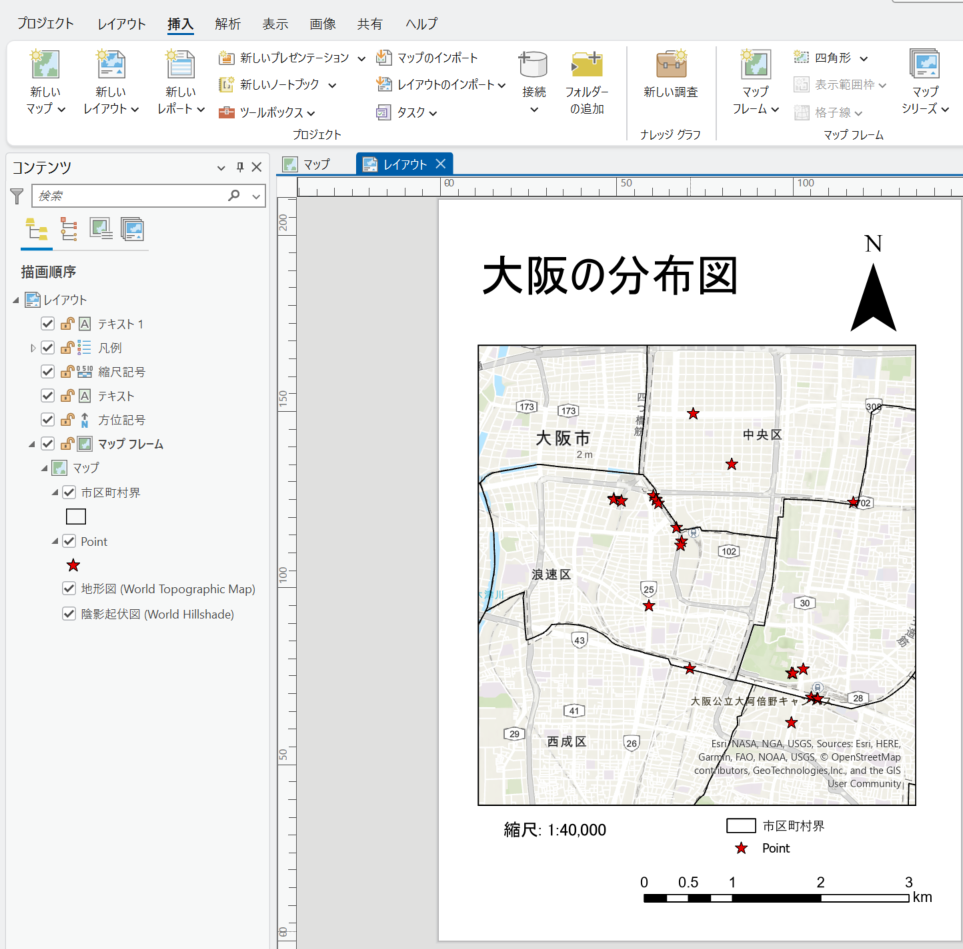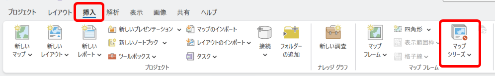 また、[挿入] タブ → [マップ フレーム] から、マップ フレームを追加します。