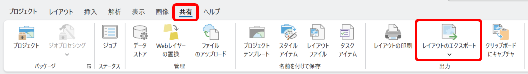 - [共有] タブ → [レイアウトのエクスポート] をクリックします。