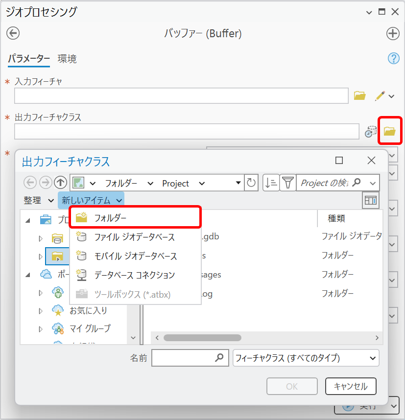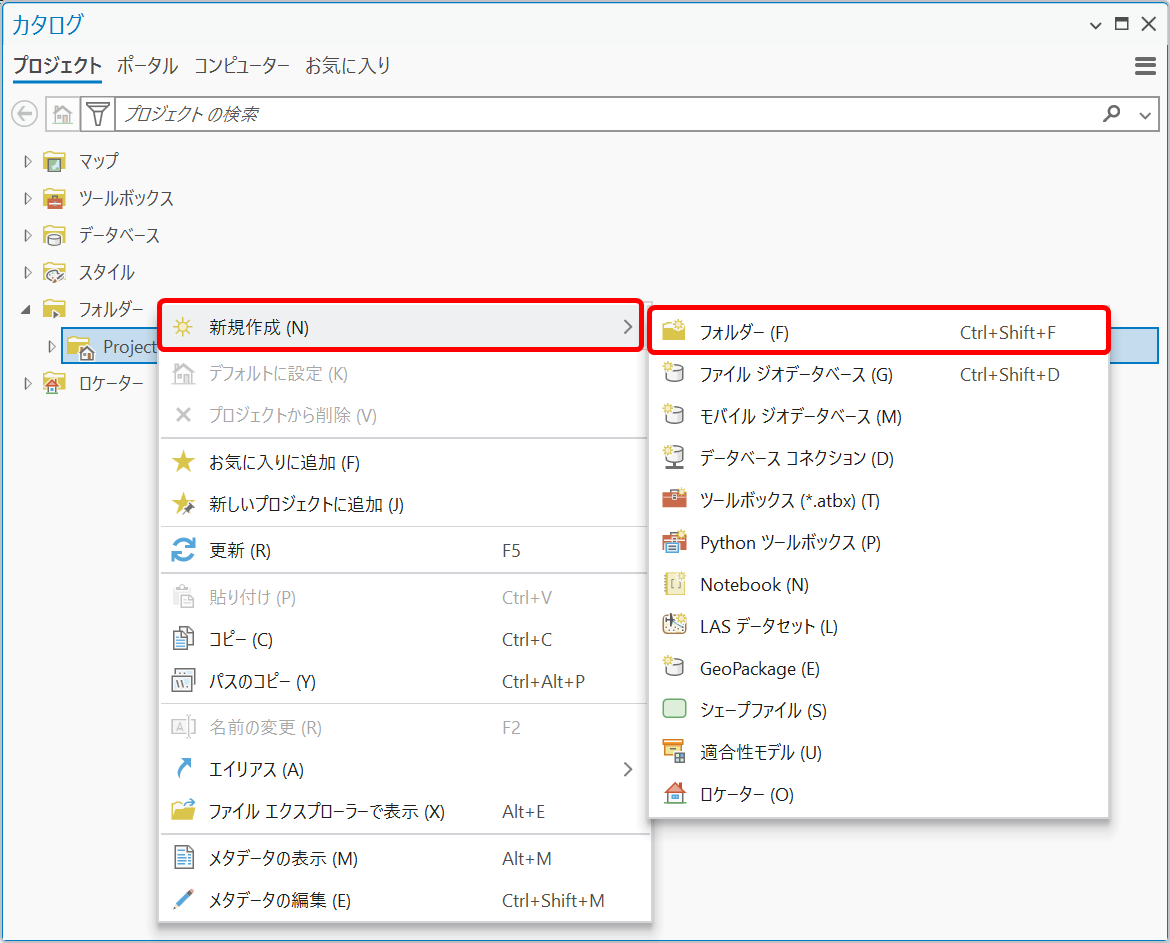 ArcGIS Pro: フォルダーやシェープファイル、ファイル ジオデータベースを新規作成する方法