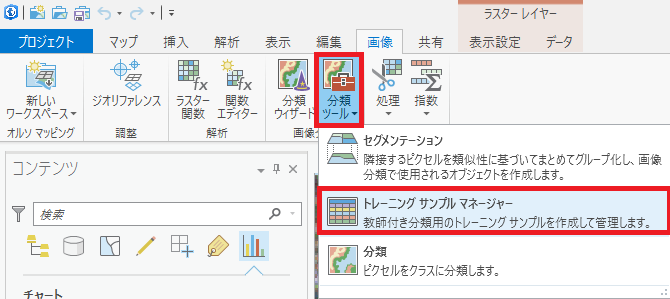 [画像] タブ → [分類ツール] → [トレーニング サンプル マネージャー] をクリックして [画像分類] ウィンドウを表示します。