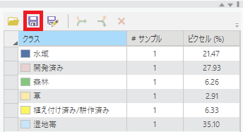 トレーニングサンプルの取得状況を [保存] ボタン(フロッピーディスク)でポリゴンデータに保存します。 - [最尤法による分類器定義ファイルの作成] ツールで教師付き分類を行うための定義ファイルを作成します。