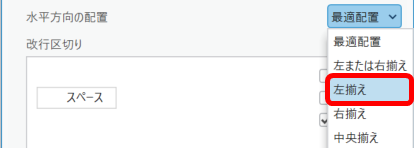 6. [水平方向の配置] を変更します。今回は [左揃え] に設定します。
