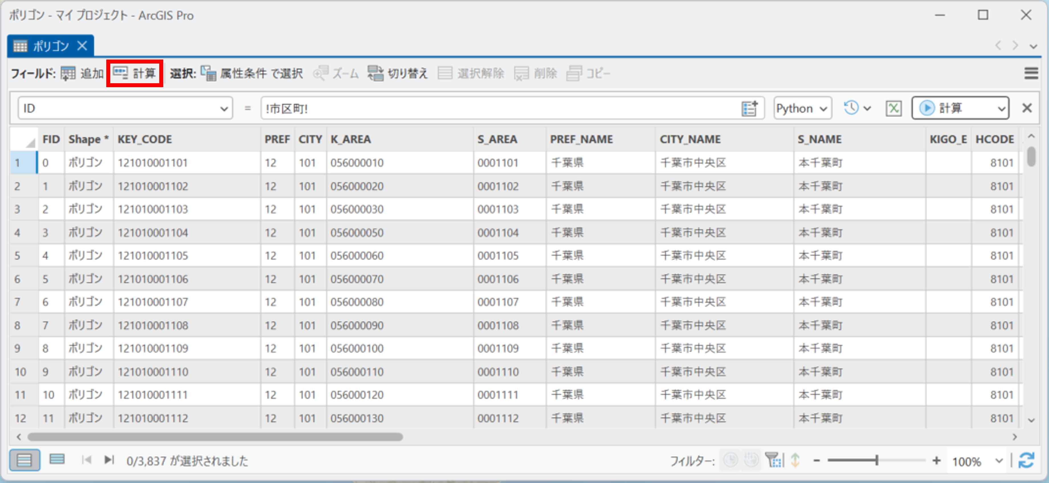 設定例:[ID] フィールドに [市区町村番号] のフィールド値をコピーする場合