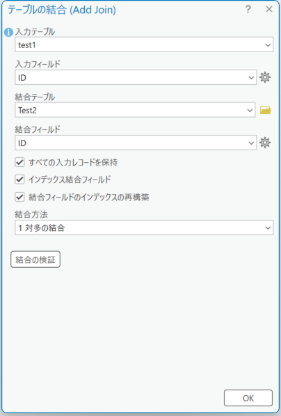 - [結合の検証] をクリックし、問題がないかを確認します。