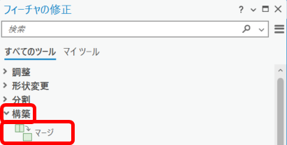 - [フィーチャの修正] ウィンドウの [構築] を展開し、[マージ] をクリックします。