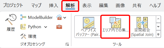 - [解析] タブ → [エリア内での集計] をクリックします。
