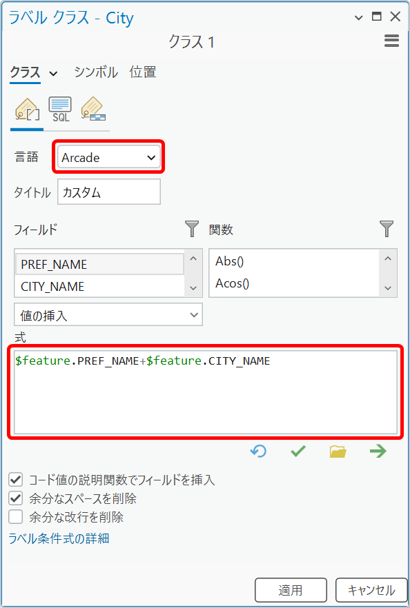 [言語] に "Arcade" を指定した場合の、ラベル条件式例をご紹介します。