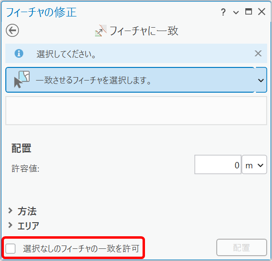 - [選択なしのフィーチャの一致を許可] チェックボックスのチェックを外します。
