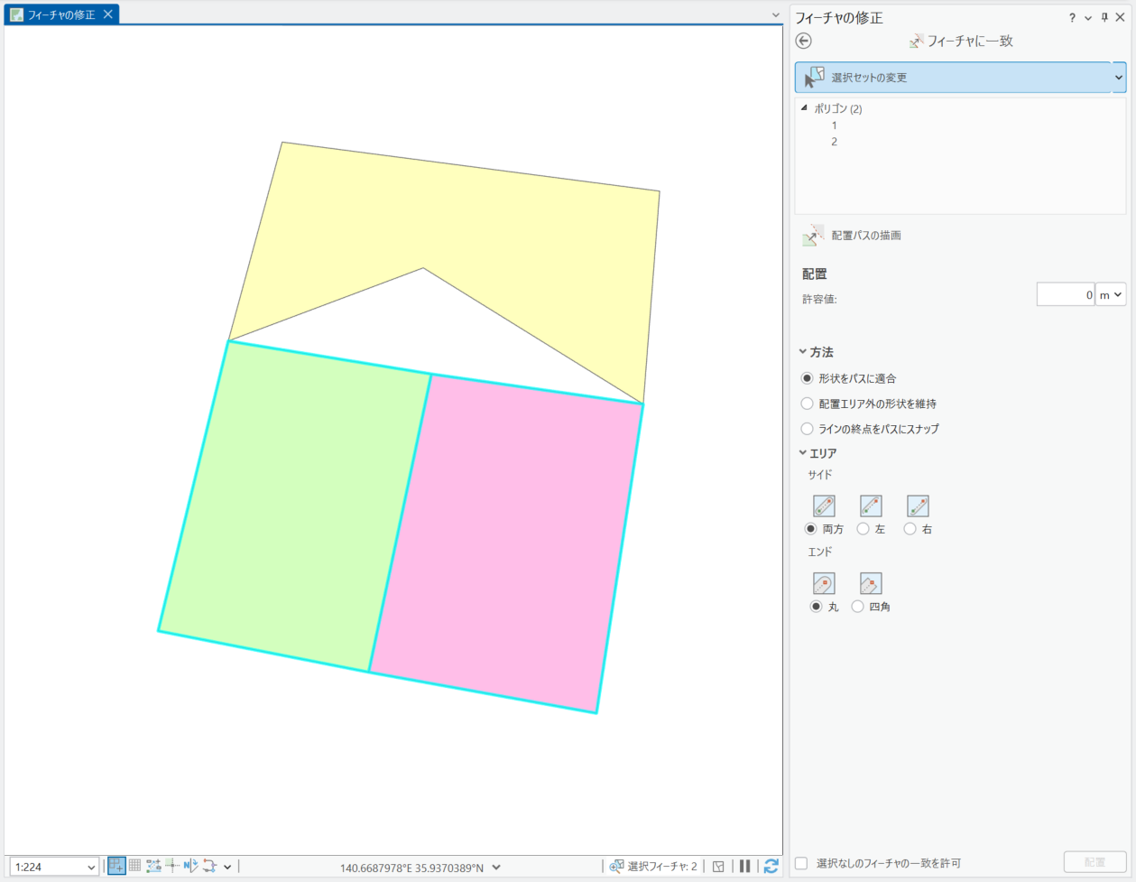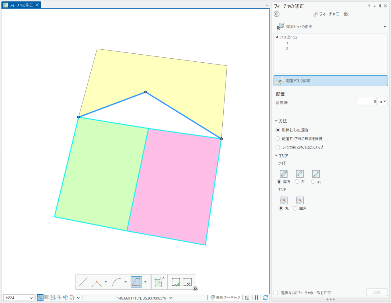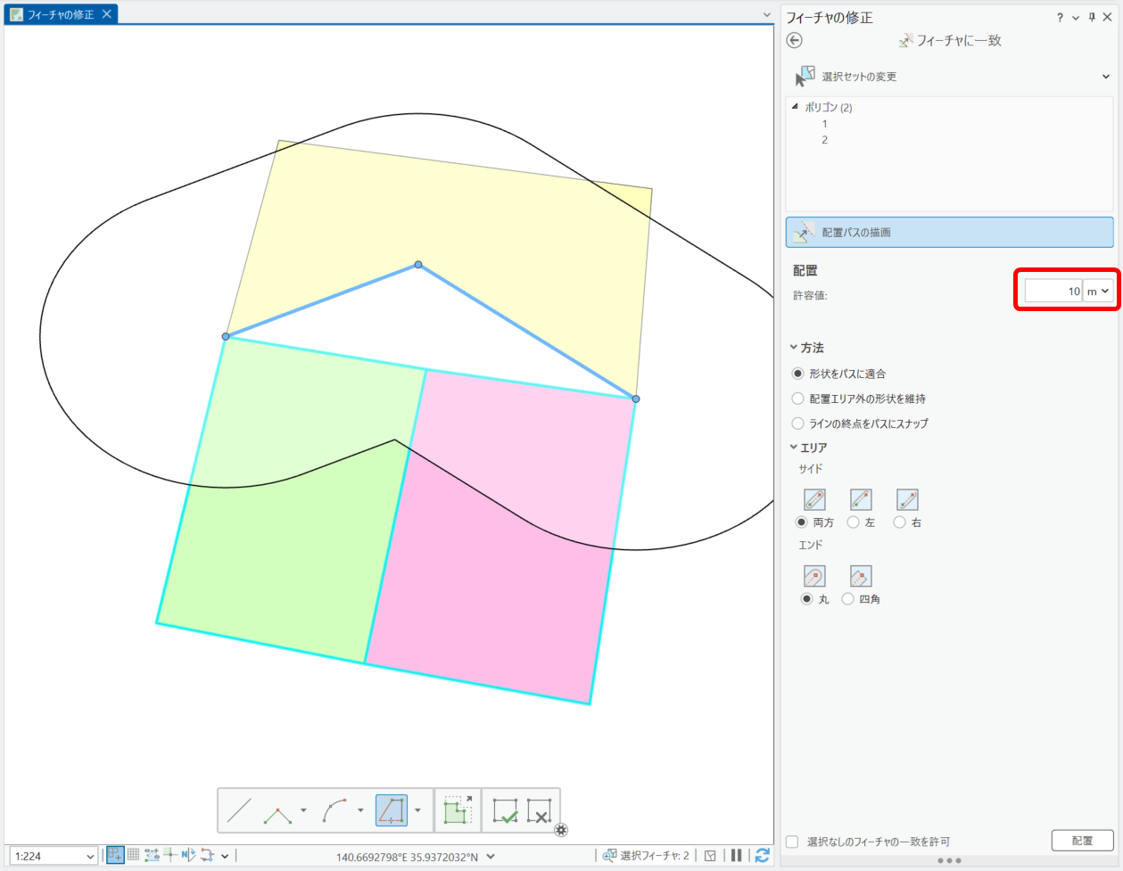 ArcGIS Pro: 特定の線分に一致するようにフィーチャ形状を変更する方法 (フィーチャに一致)