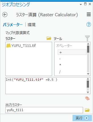 ラスター演算式: Int("入力ラスタ"+ 0.5)[ラスターのコピー] ツールを使用する方法