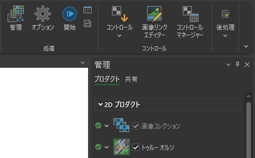 - プロジェクトが作成され、[管理] ウィンドウ の [トゥルーオルソ] のチェックボックスがオンになっていることを確認し、[開始] ボタンをクリックします。