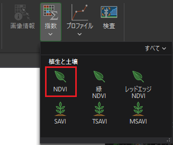 - [分析] タブ → [指数] ドロップダウン リストをクリックして [NDVI] を選択します。