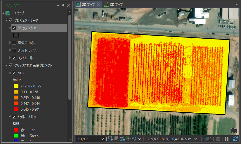 ※NDVI 画像に関する情報は「GIS 基礎解説|マルチスペクトル画像」をご参照ください。