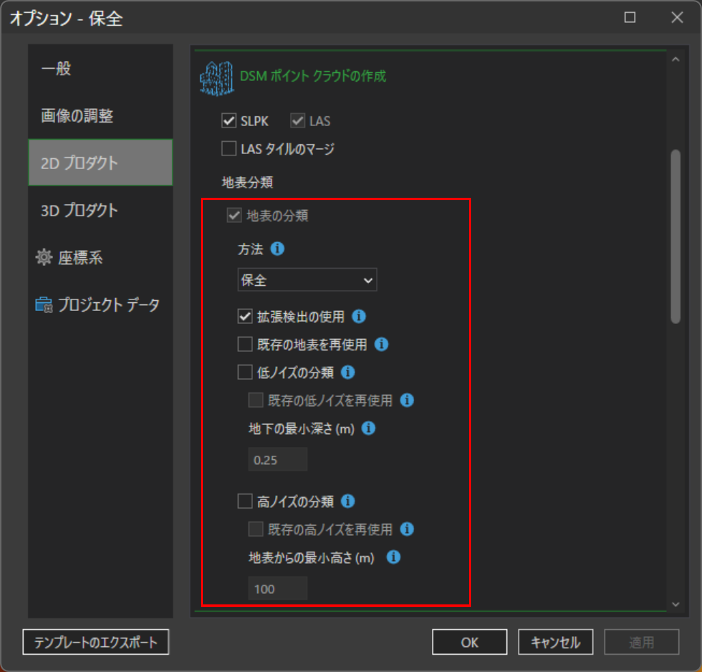 Drone2Map で DSM(数値表層モデル)ポイント クラウドを生成する際の地表分類を調整したい