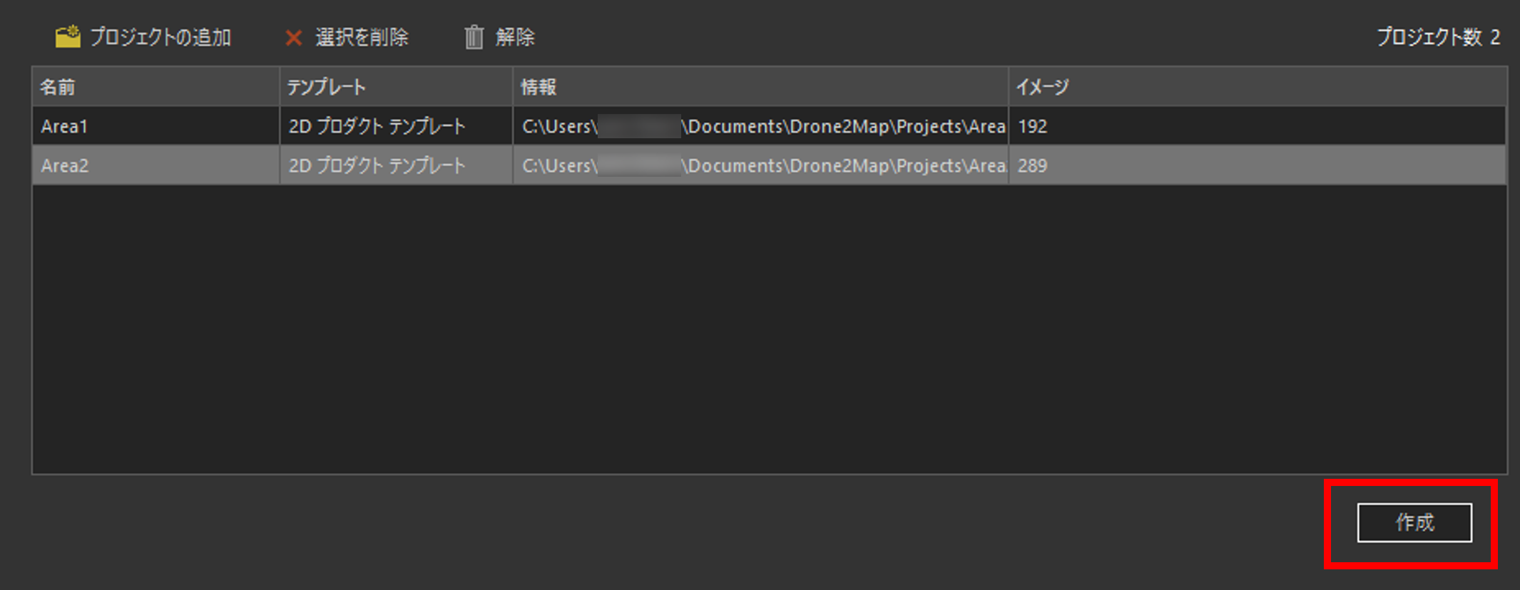 バッチ処理を行う Drone2Map のプロジェクト ファイル (*.d2mx) を 2 つ以上用意します。