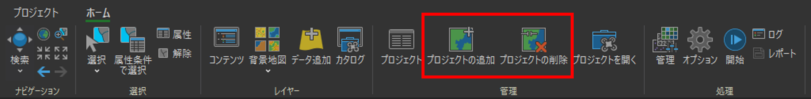 バッチ処理を行うプロジェクトを追加、削除することができます。[ホーム] → [プロジェクトの追加] または [プロジェクトの削除] をクリックします。