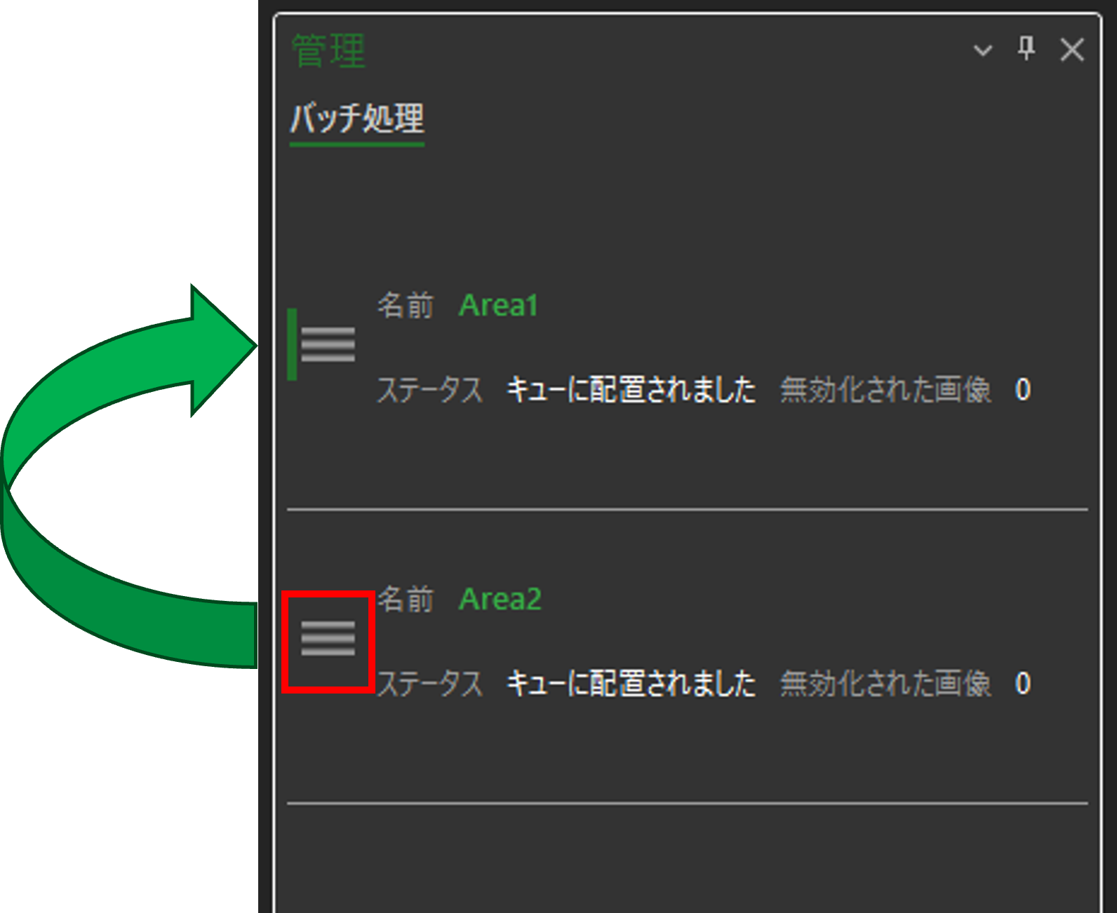 処理を行うプロジェクトの順番を変更できます。[管理] ウィンドウで各プロジェクト名の左側の