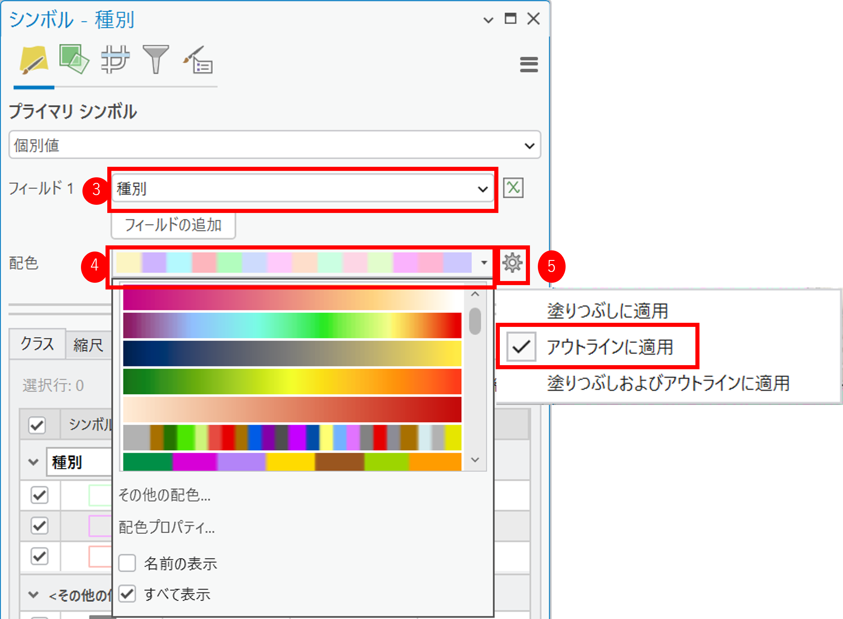 ArcGIS Pro: ポリゴンのアウトラインを属性値に基づいて色分け表示したい