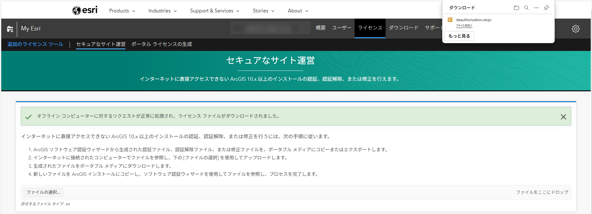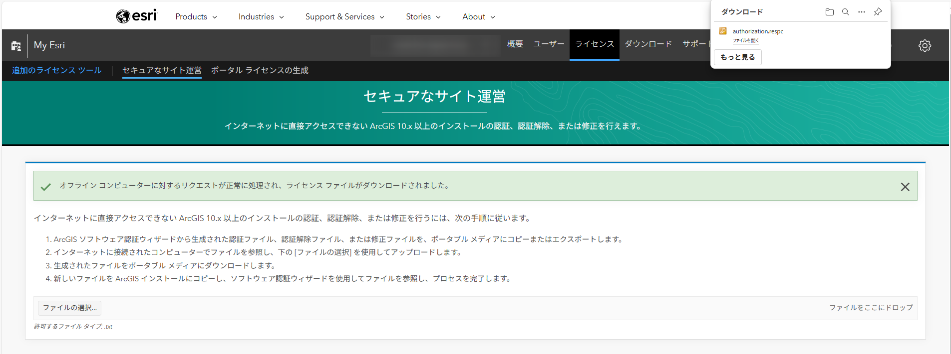 FAQ: ArcGIS Pro 3.1 上で、単独使用 (SU) ライセンスのオフライン認証を行うと空の authorize.txt が生成され、ライセンス認証が完了できません