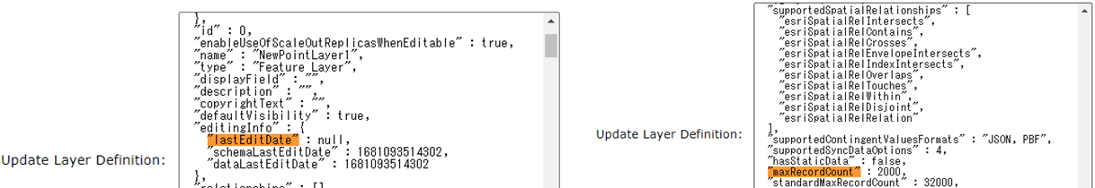 手順 6 で以下のキーを検索して値を変更し、[Update Layer Definition] ボタンをクリックします。