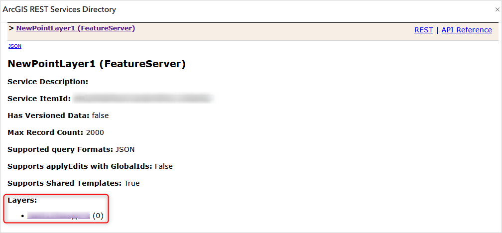 - フィーチャ サービス内にあるレイヤーをクリックします。