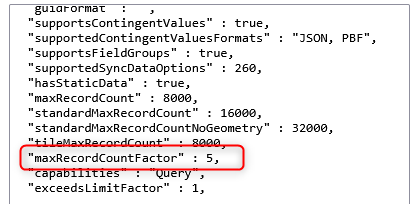 最大数は ArcGIS REST API の次のプロパティで制御されます。- maxRecordCount