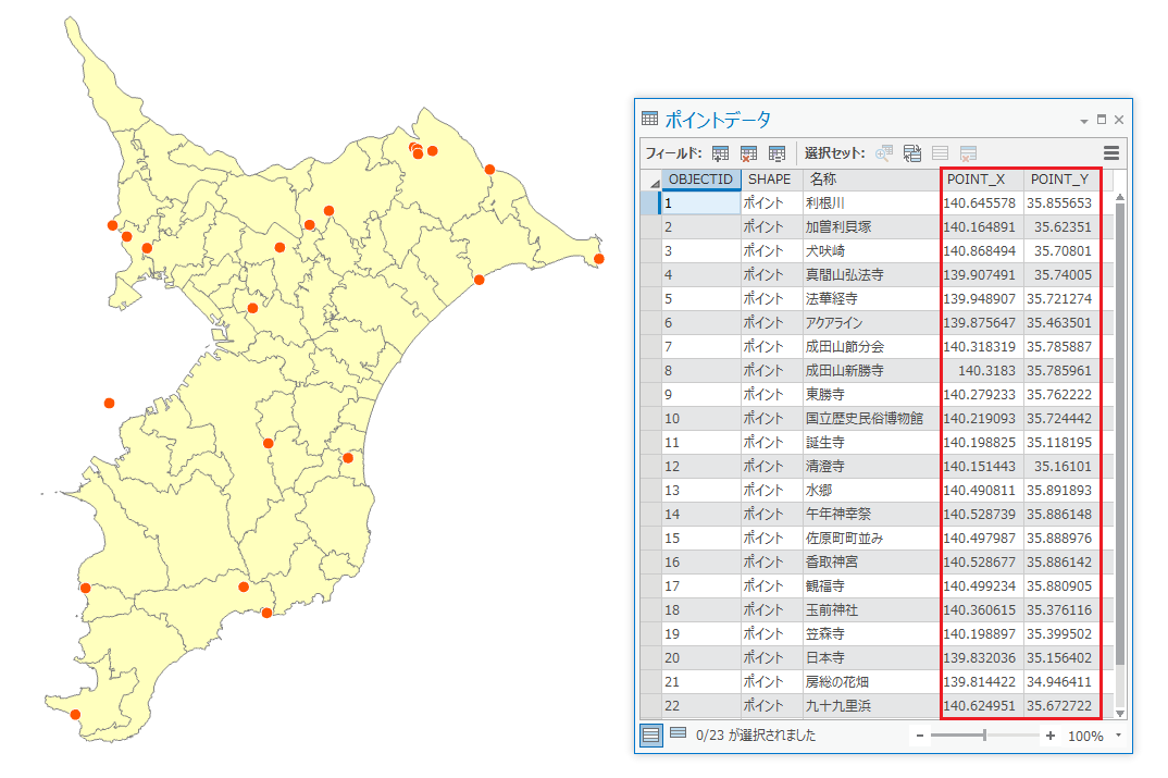 ・重心の XY 座標を追加する場合は、ArcGIS Pro: ポリゴンの重心をもとめるには に詳細もございます。ラインの場合
