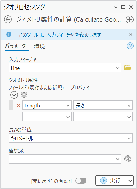 ※ [長さ] は入力フィーチャに指定したライン フィーチャが投影座標系の場合に表示されます。