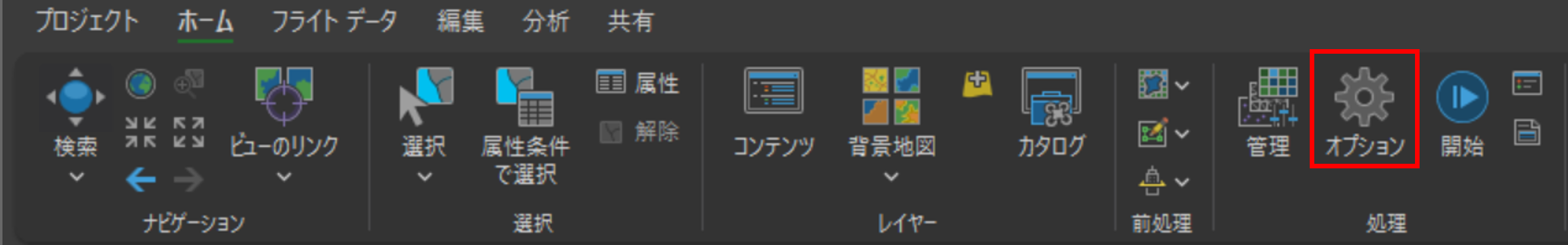 2. [ホーム] タブ → [処理] グループ → [オプション] をクリックして [オプション] ウィンドウを開きます。