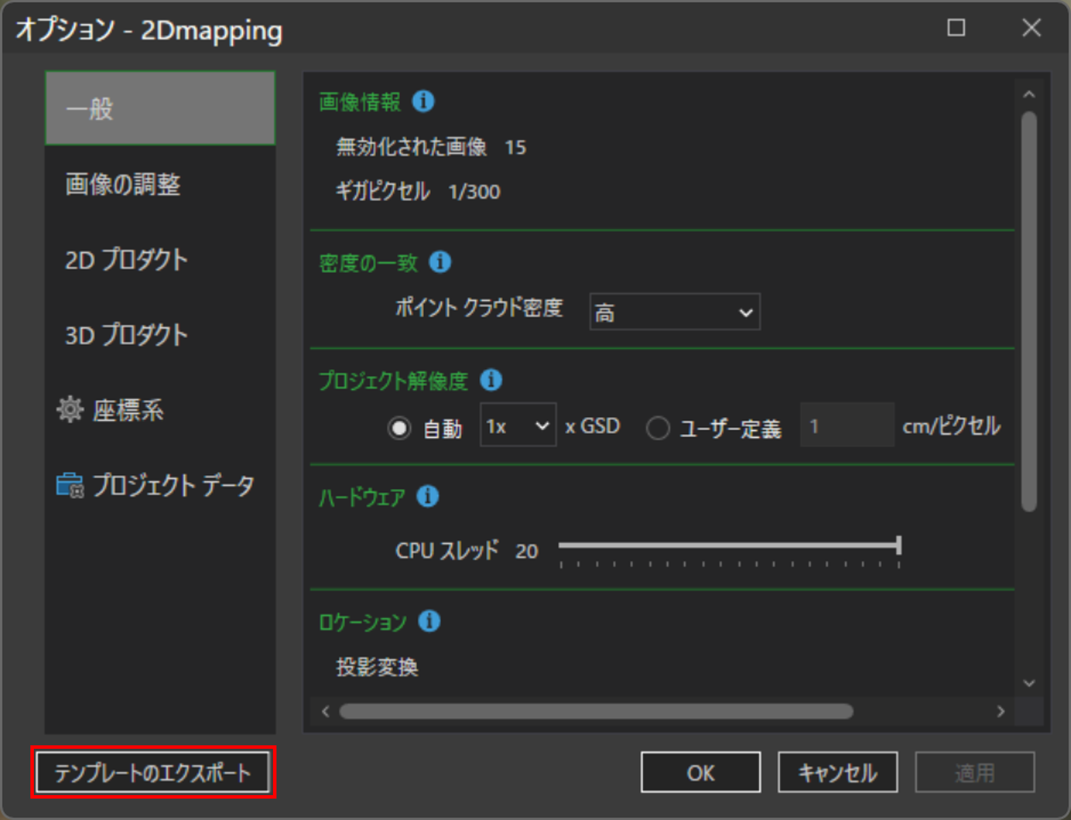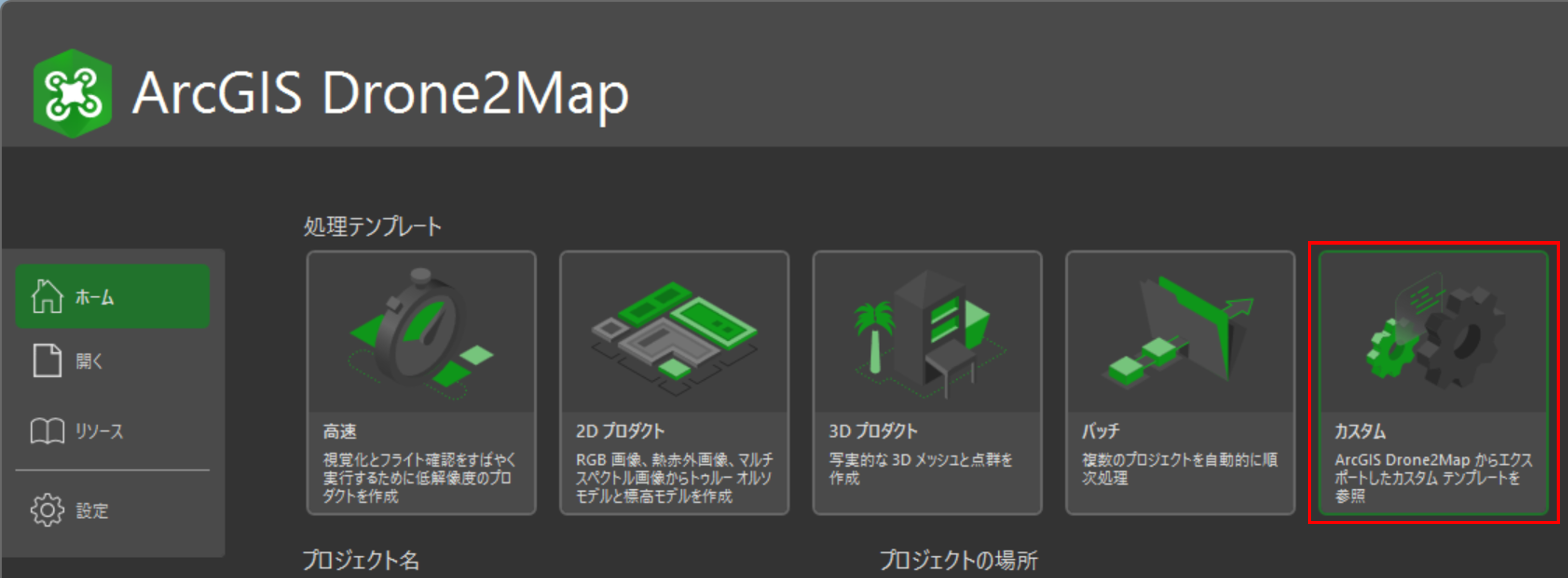 用意されているプロジェクト テンプレート (2D プロダクト テンプレートや 3D プロダクト テンプレート) の他にカスタムのテンプレートを作成することができます。よく使用する設定をテンプレートとして保存しておくことでいつも同じ設定を選んで処理を行うことができます。手順