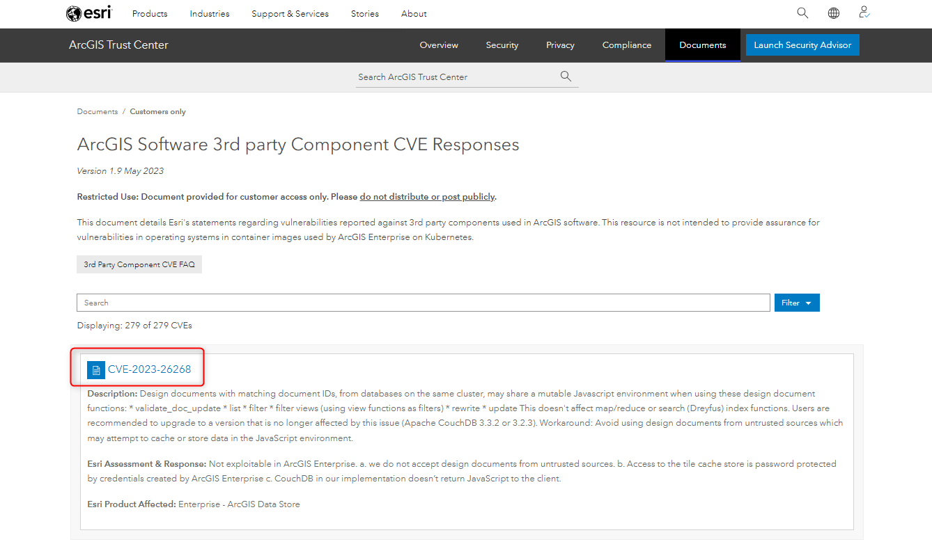 ■ArcGIS Software 3rd party Component CVE Responseshttps://trust.arcgis.com/en/customer-documents/component-cve-responses