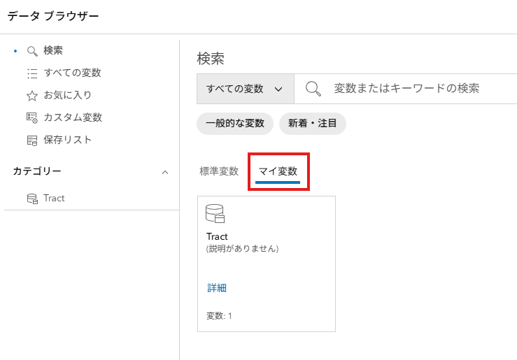 上記の手順で作成した変数は、データ ブラウザーの [マイ データ] タブに保存されます。