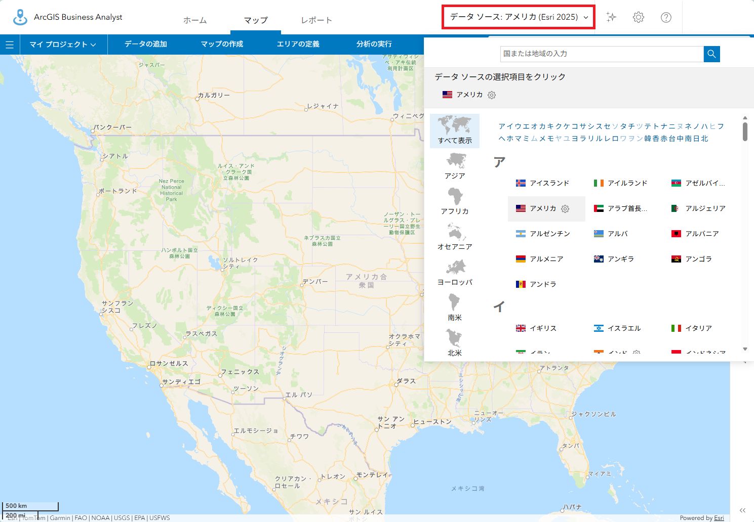 - データソースをアメリカに設定します。