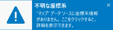 ※この時、[不明な座標系] が表示されますが、これは CAD データ自体に座標系が設定されていない場合や投影ファイル (*.prj) がない場合に表示されます。ジオリファレンスを行うことで座標系情報を持つ投影ファイルが作成されるため、同じファイルでは表示されなくなります。