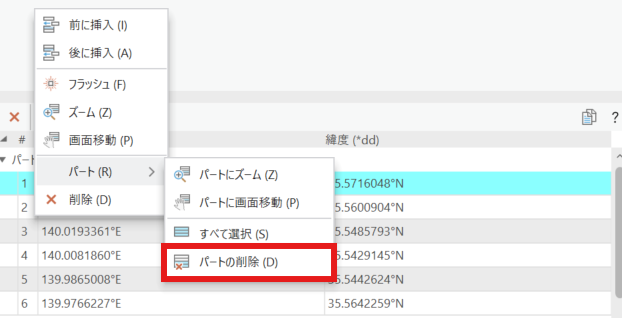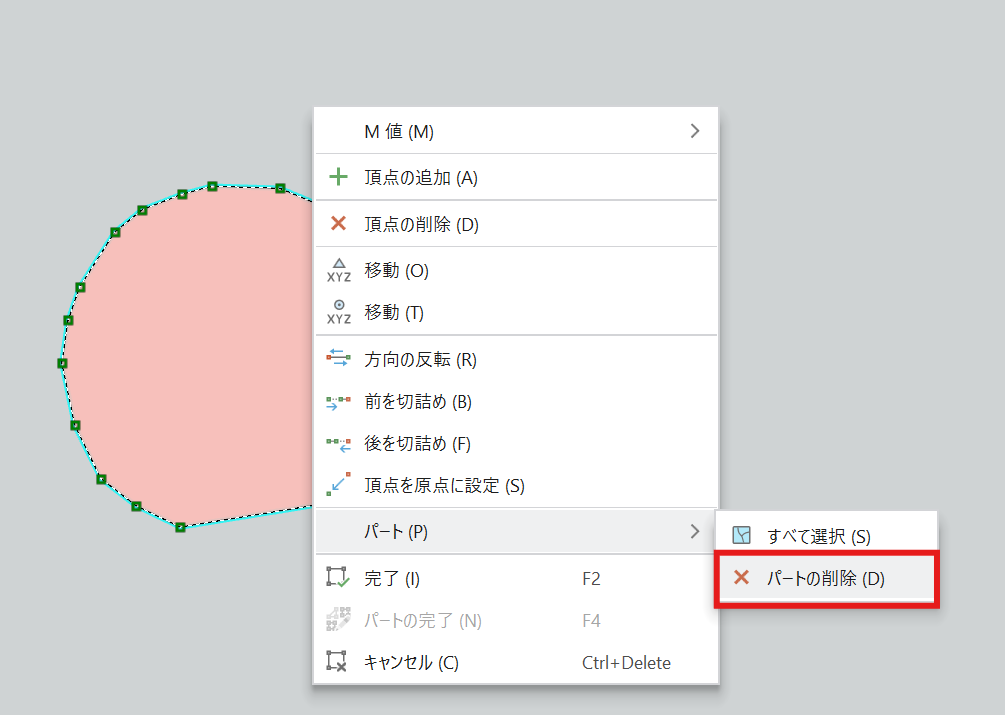 または、パートの頂点の行を右クリックして、[パート] → [パートの削除] の順にクリックします。 - 右クリックして [完了] をクリックするか、F2 キーを押します。