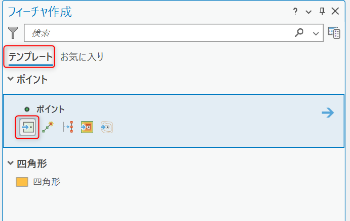 - [フィーチャ作成] ウィンドウ上で、編集対象となるレイヤーのテンプレートを選択します。