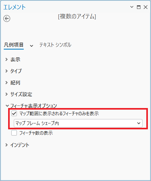 - [フィーチャ表示オプション] の [マップ範囲の表示されるフィーチャのみを表示] にチェックを入れます。