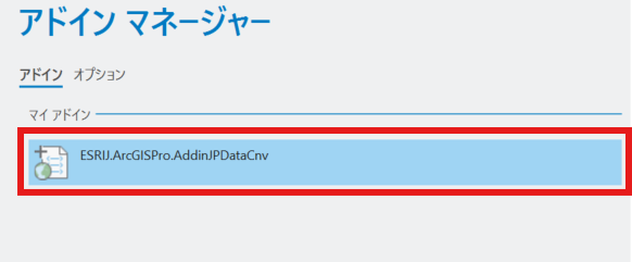 ArcGIS Pro にインストールされたアドイン ツールのバージョンは、ArcGIS Pro の [アドイン マネージャー] から確認できます。