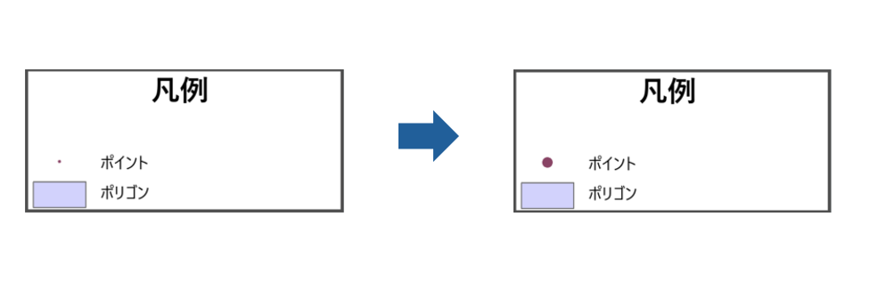 凡例を表示した際に、下図のようにポイント シンボルが小さくて見づらい場合に、大きく表示する方法を説明します。