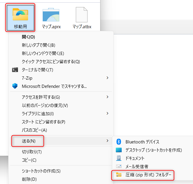 - Windows エクスプローラーを開き、「移動用」フォルダーを右クリックし、