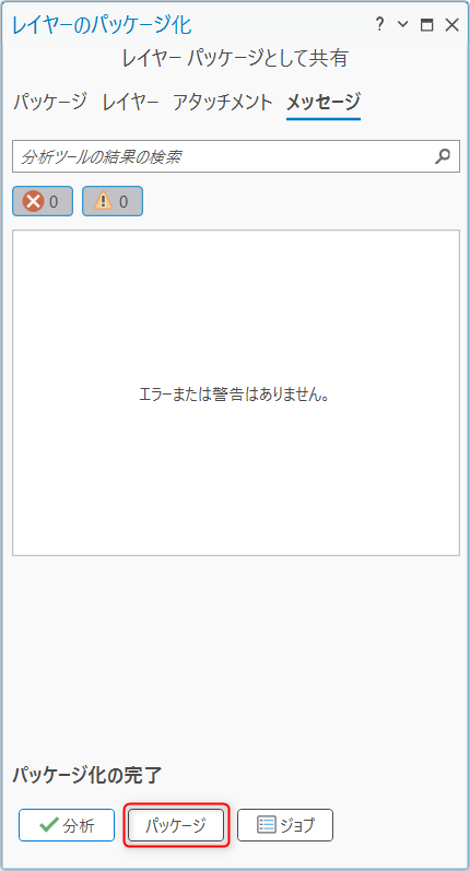 - [パッケージ] ボタンをクリックします。レイヤー パッケージの作成が開始します。