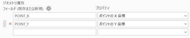 ・[フィールド]:「POINT_X」および「POINT_Y」(任意のフィールド名でも可)