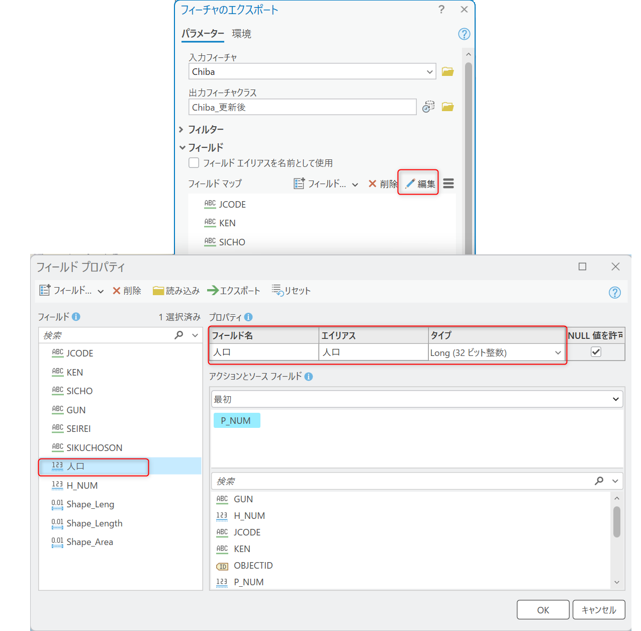 フィールド名 フィールド タイプ フィールド長 出力方法 フィールド ビュー ● △*1 △*2 データの更新 [フィールドの変更] ツール ● △*1 △*2 データの更新 フィールドの新規作成 ● ● ● データの更新 [フィーチャのエクスポート] ツール ● ● ● 新規に出力 ●:変更可能